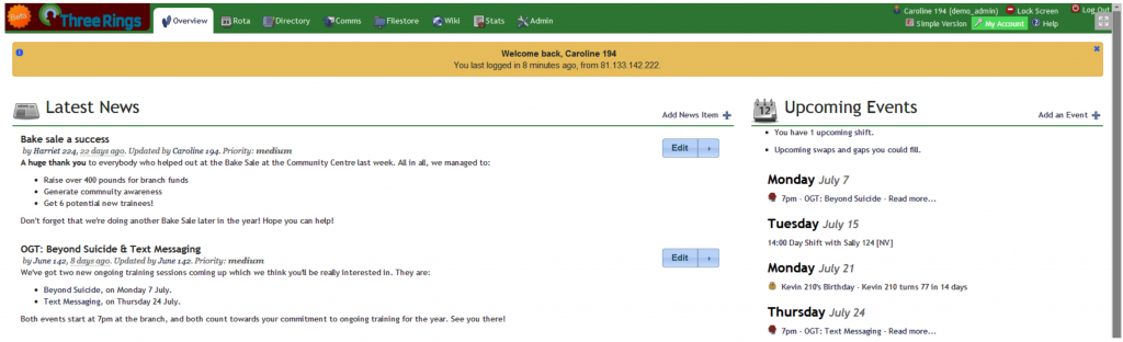 Today, Three Rings is an incredibly powerful volunteer management tool that helps power the incredible work of a massive range of charities and voluntary organisations from helplines like Nightline, Samaritans, and Childline to community shops, theatres and pubs, supporting charities providing Citizen’s Advice, services for the disabled, or vital Blood Bike services. We underpin work done at food banks and volunteer-run library services, and we helped literally thousands of volunteers at vaccination centres through our efforts to enable volunteering during the Pandemic.
